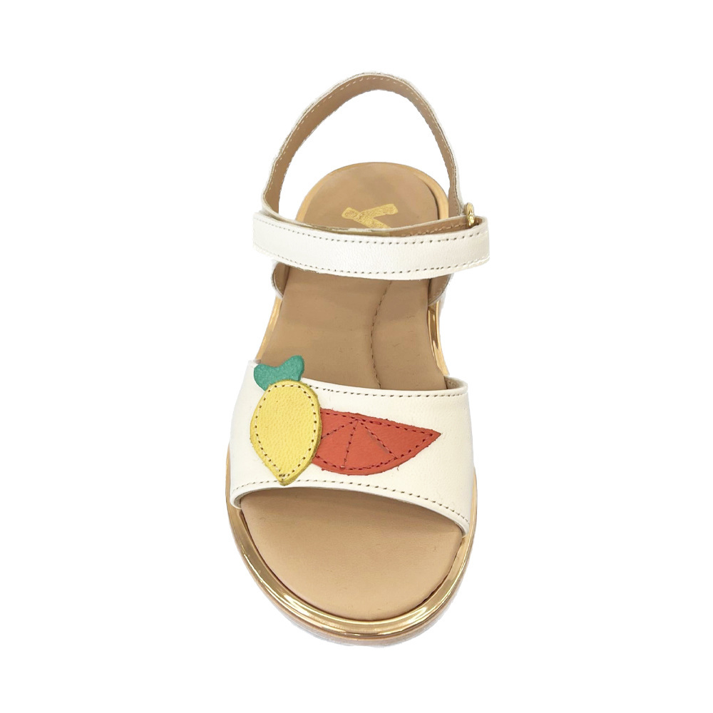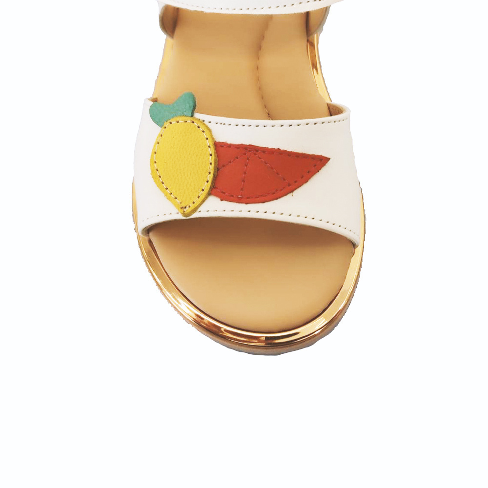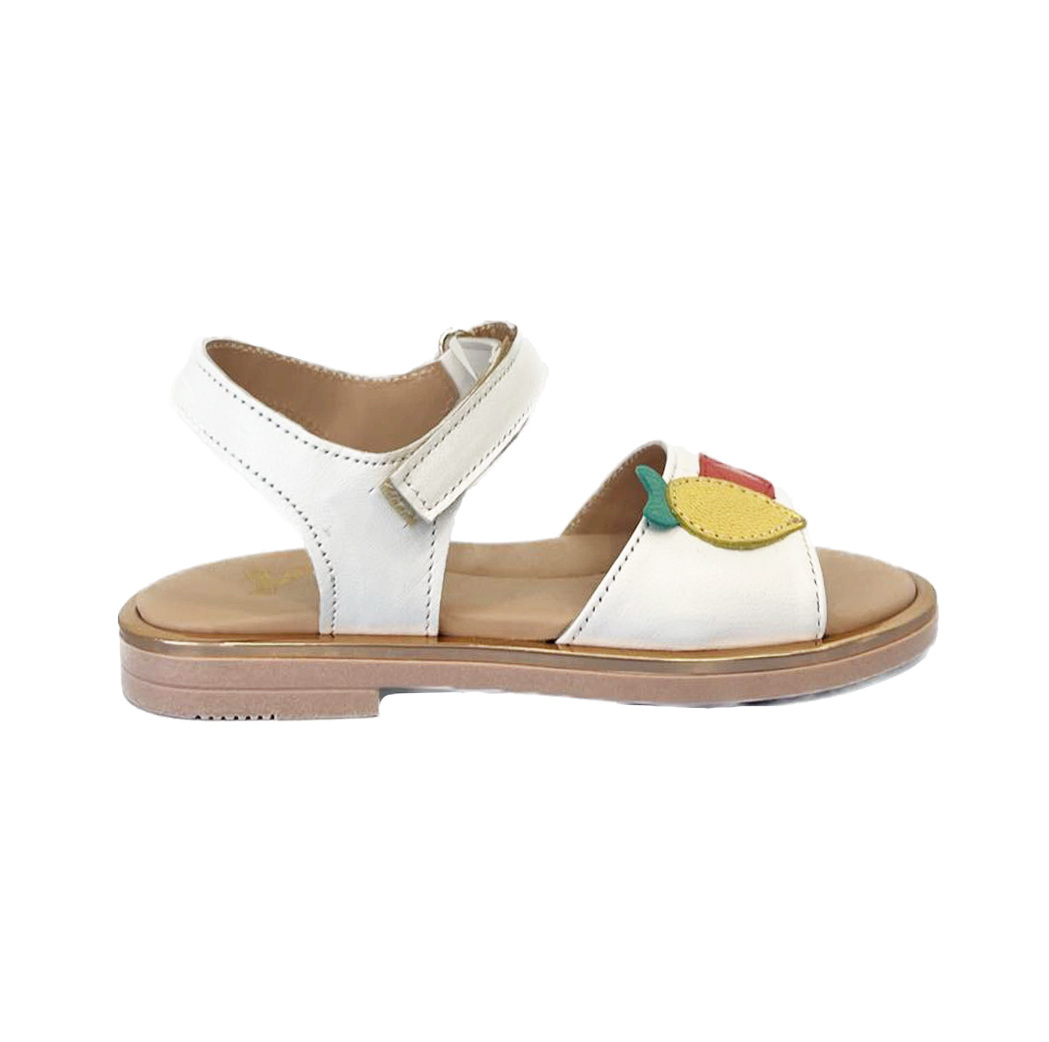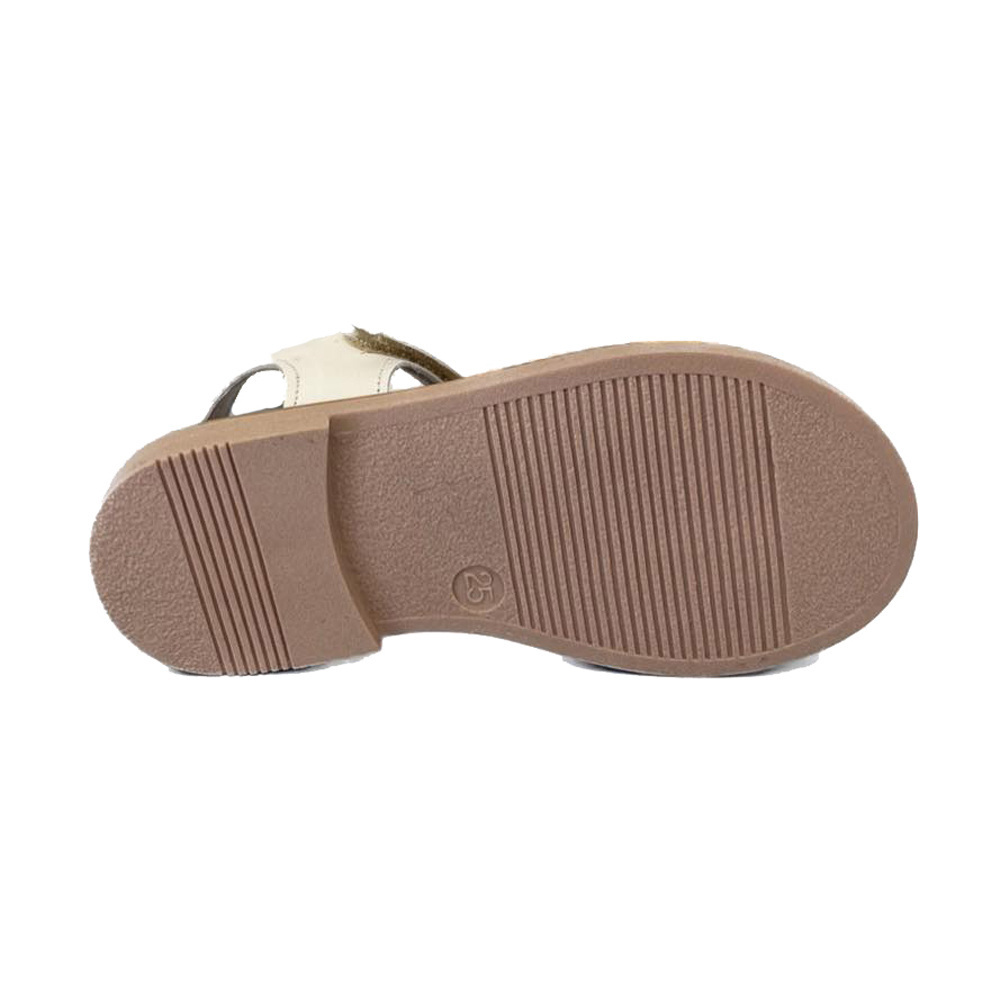 Δερμάτινο πέδιλο της εταιρείας Υο σε λευκό χρώμα, με ειδικά διαμορφωμένο μαλακό πάτο με ανατομία και με πολύ όμορφες λεπτομέρειες στο μπροστινό μέρος. Το δέσιμο γίνεται με αυτοκόλλητο Velcro και διαθέτει επίσης αντιολισθητικό πάτο. Ιδανική πρόταση για εντυπωσιακές εμφανίσεις.