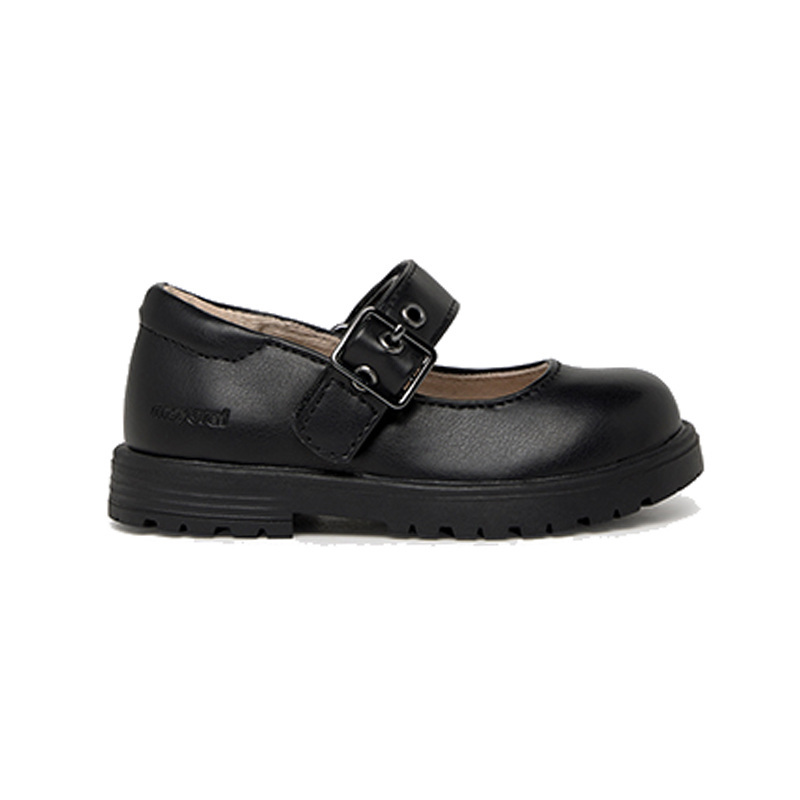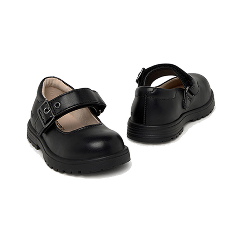 Παπούτσια τύπου Mary Jane για κοριτσάκια, μια διασκεδαστική και μοντέρνα πινελιά στην εμφάνισή τους. Εξωτερικό υλικό κατασκευασμένο από οικολογικό δέρμα. Εσωτερική επένδυση από συνδυασμό υφάσματος και δέρματος. Άνετη και αντιολισθητική οδοντωτή λαστιχένια σόλα για δυνατό κράτημα. Κλείνει με αυτοκόλλητο βέλκρο για άψογη εφαρμογή στο πόδι.